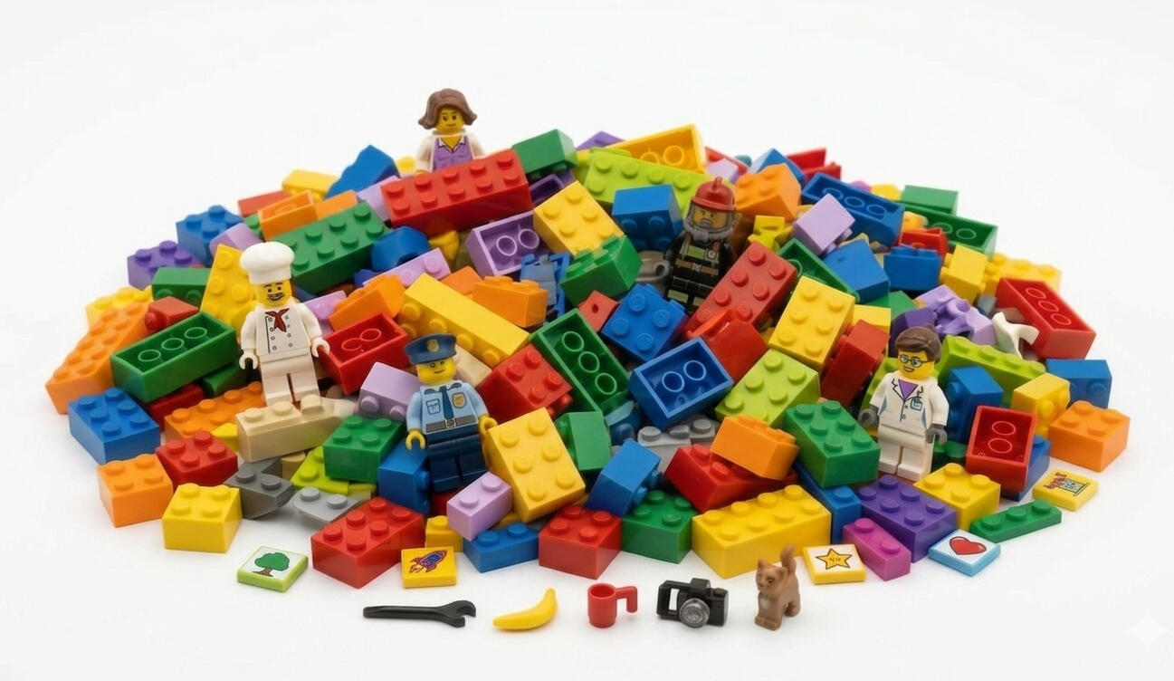 Am Ende steht ein fertiges Produkt – ob als sorgfältig zusammengestelltes Kilopaket für kreative Eigenbauten oder als liebevoll rekonstruiertes Sammlerset. Durch diesen Kreislauf aus Sortieren, Reinigen und Neuaufbauen schenken wir den Steinen eine lange Lebensdauer.So wird aus deinen alten Erinnerungen wieder echte Begeisterung in den Händen eines neuen Baumeisters.